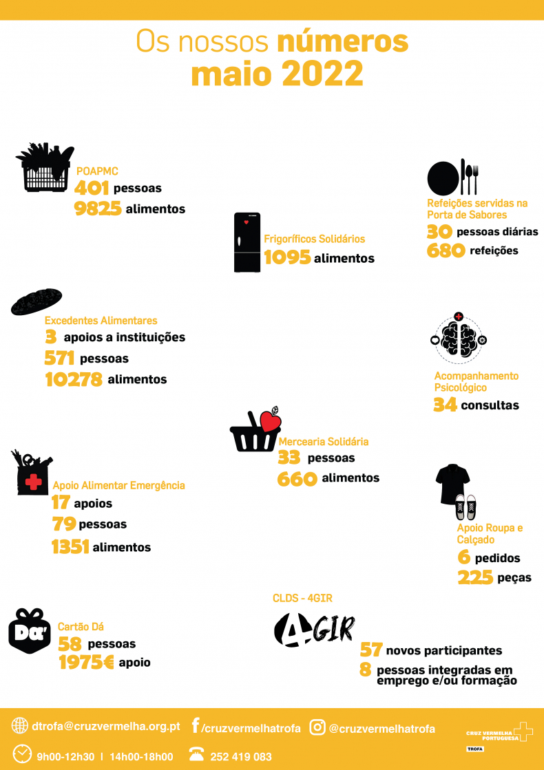 Damos a conhecer os apoios prestados pela Delegação da Trofa da CVP no mês de Maio.